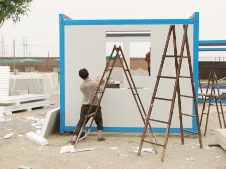 溫州移動崗?fù)な浅浞掷貌输搳A芯墻板及屋面瓦楞板的自身強(qiáng)度,經(jīng)過自攻螺絲、拉釘、螺栓將鋼結(jié)構(gòu)底座、墻面夾芯板和屋面板連接組成的房屋系統(tǒng)。施工快捷、整體可移動,特別適合用于溫州市政設(shè)施及野外建筑工地的門衛(wèi)室、保安室等。